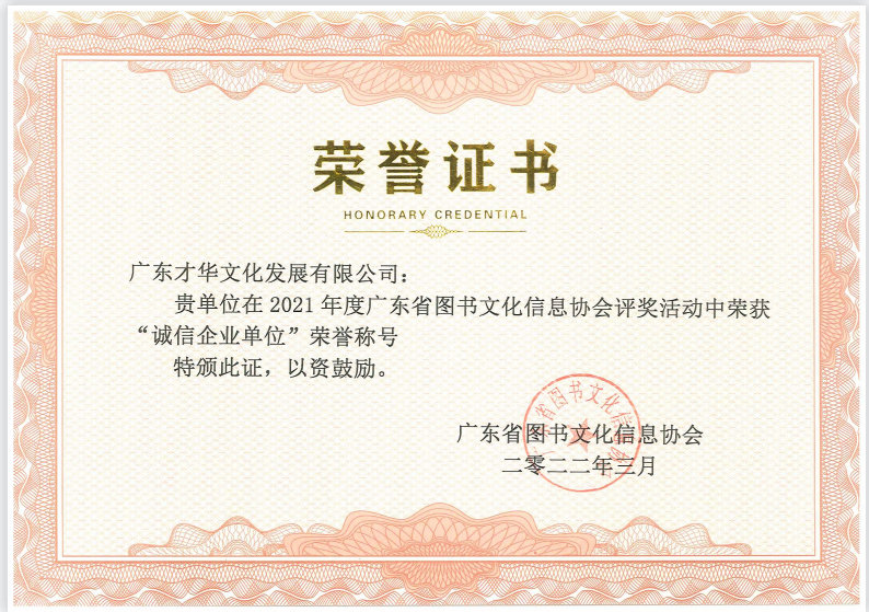 廣東才華文化發(fā)展有限公司榮獲2021“誠信企業(yè)單位”等獎項